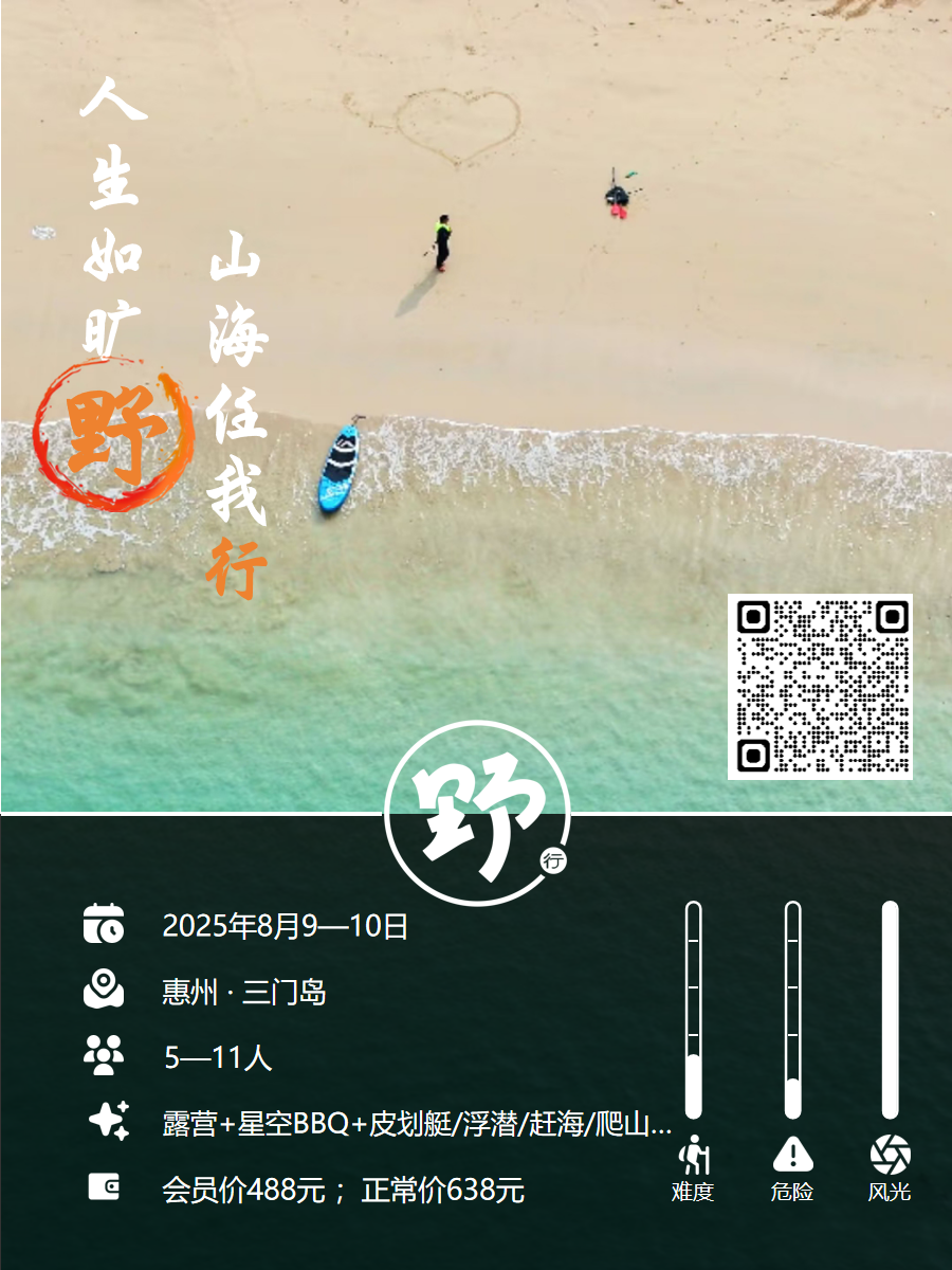 住宿条件升级(付费):如果你怕自己睡的不安稳,报名时提前和领队说明一下,报名费+80元露营即可改为海岛民宿(四人间or六人间),报名费+550元海景酒店双人房欢迎下榻!