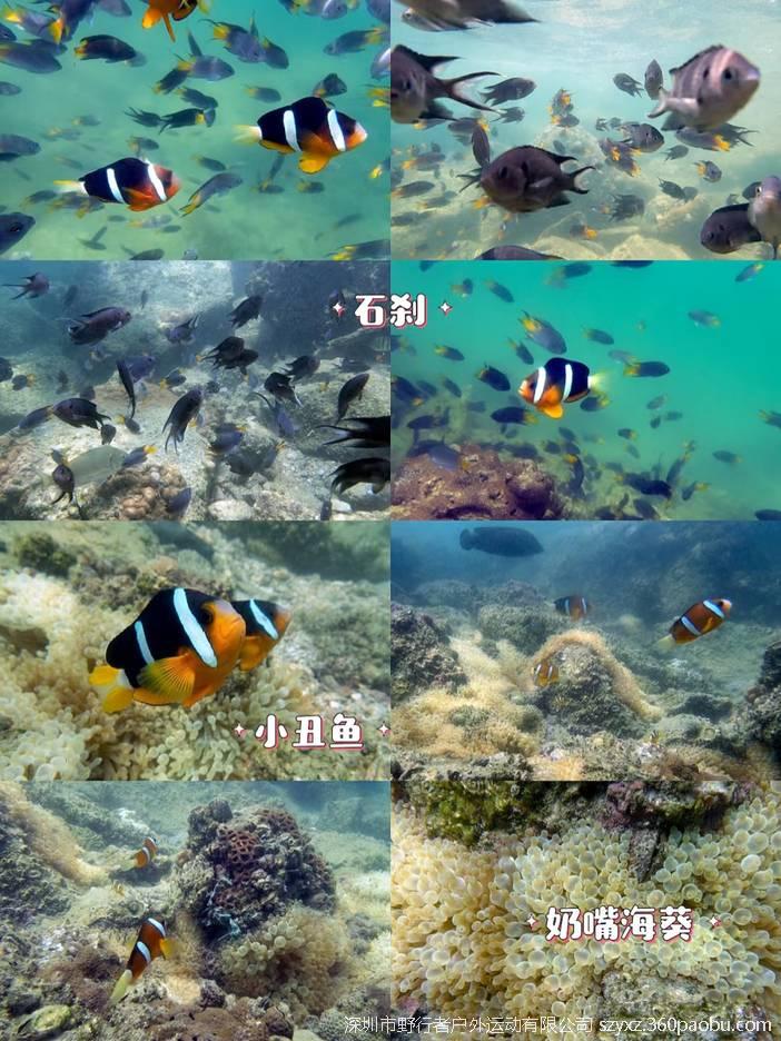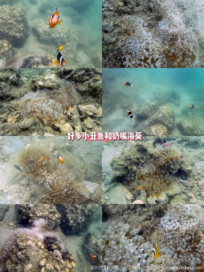海底世界奇遇记: 穿戴浮潜装备,潜入水中,近距离观赏色彩斑斓的珊瑚群、形态各异的热带鱼群和丰富的海洋生物,还有可可爱爱的小丑鱼与你相伴哦(请勿触碰)。