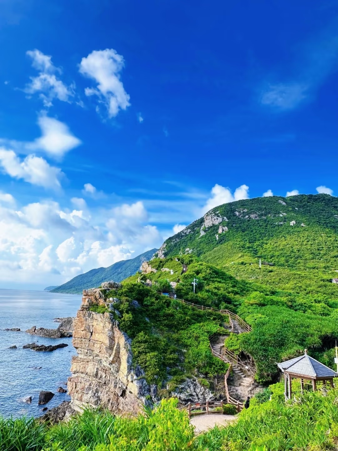 🚶♀️我们从东涌社区治安亭出发,沿山脊线缓缓而上—— 一侧是绵延的七娘山翠色蔓延🌿,一侧是太平洋的蓝铺展到天际🌊。