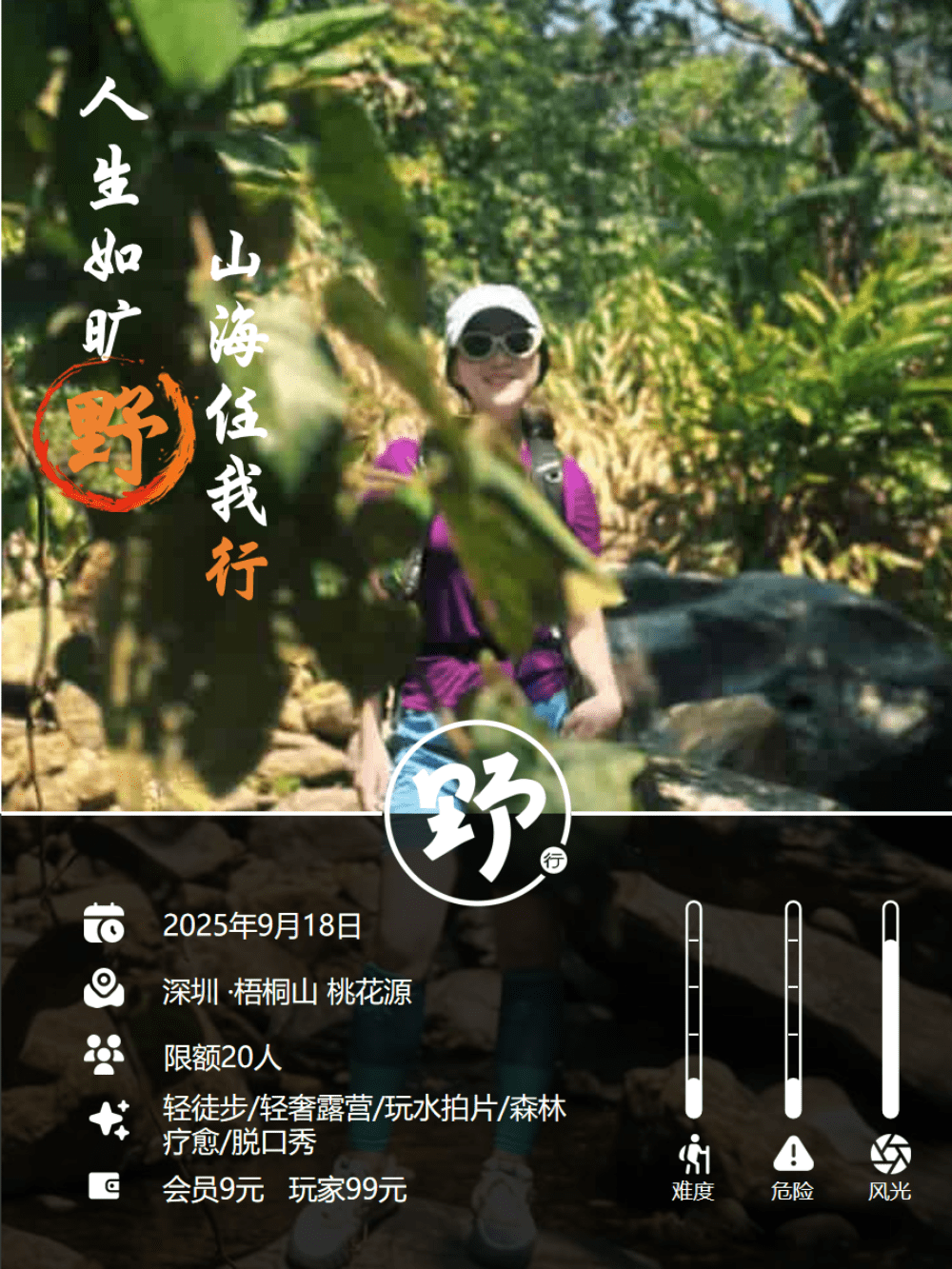 🚶 玩法:轻徒步+溯溪玩水+轻奢露营+森林疗愈+自然摄影+美食分享