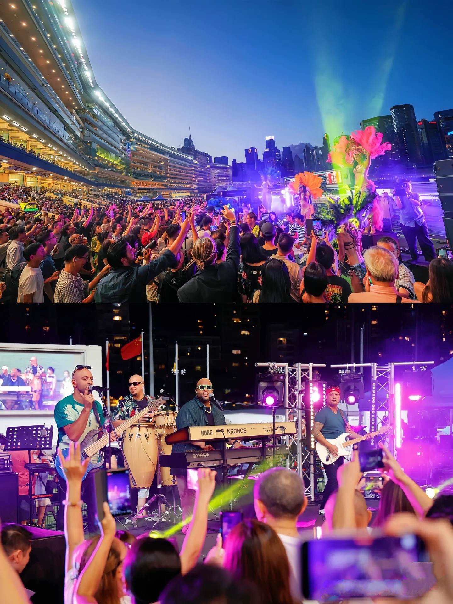 随着夜幕降临,我们转场前往充满传奇色彩的跑马地马场。这里是世界级赛马盛事的举办地,更是香港“马照跑”精神的生动体现。每周三晚上的“Happy Wednesday”主题派对,让整个马场变身大型嘉年华。