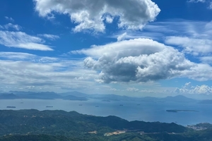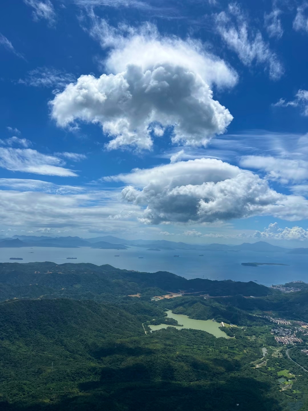 在主观景台,360°云端视野,晴天可远眺香港平洲岛、三门岛,云海翻涌时如坠仙侠世界。脚下是火山岩铸就的“空中舞台”,海浪与山风在此合奏,随手一拍都是“人生照片”。
