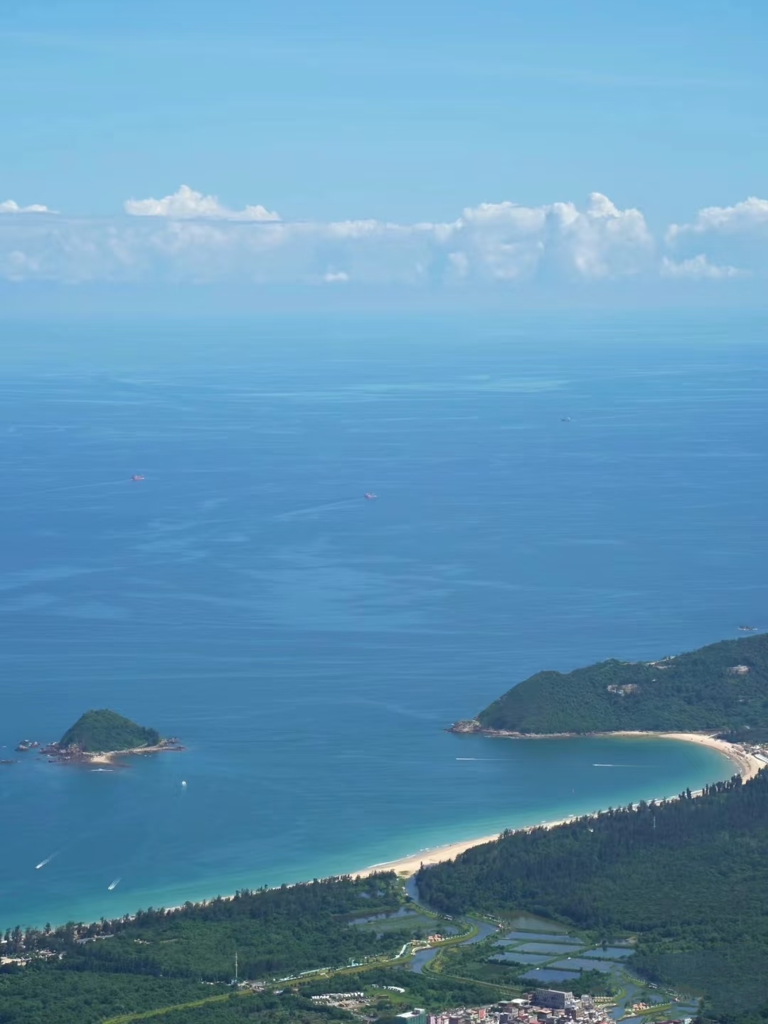 穿越时空般,于原始丛林里手脚并用的土路探险,偶遇岩洞、山泉与密林光影,野趣满分!回望大亚湾,渔船如星点缀碧波。