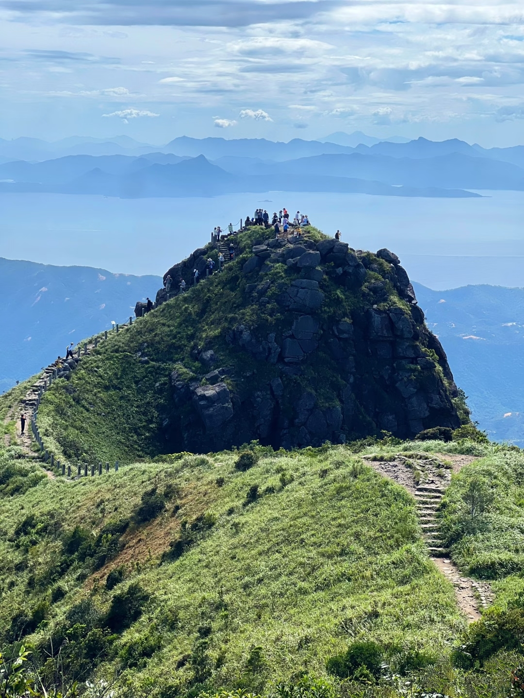 “七娘山是深圳写给天空的一封情书” ✉️——这里没有钢筋森林的压迫,只有 风穿过草甸的沙沙声 ,巨石堆叠成天然“烽火台”,站在山脊线上,左手是 玻璃般的蔚蓝大鹏湾 ,右手是 绵延到天边的七娘山脉。