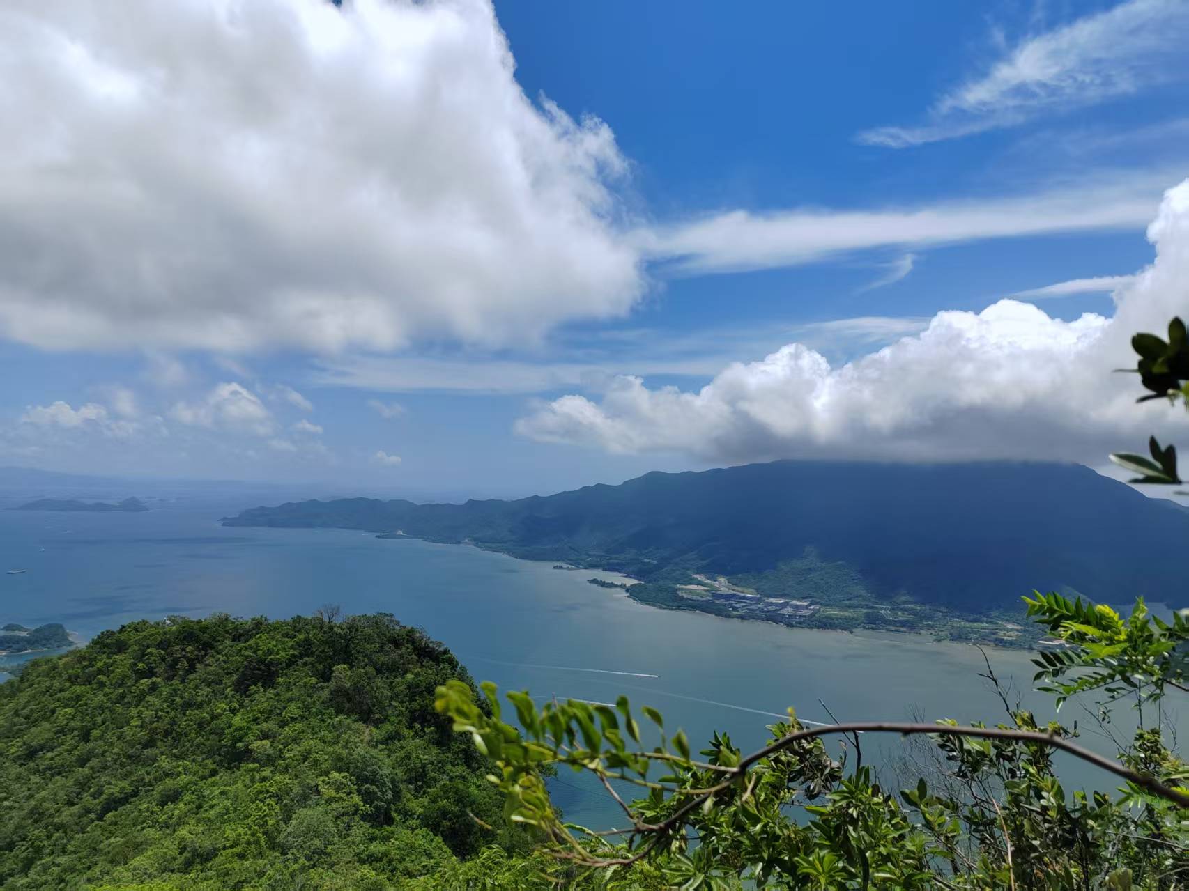 当你终于站在717米的山顶,那一刻,所有的汗水都将化为惊叹。放眼望去,连绵的山脉与蔚蓝的大海交织成一幅壮丽画卷,深圳与惠阳两地的美景尽收眼底。山有界,水无垠,舟疾驰,雾蒸腾——这般景象,唯有登顶者方能领略。