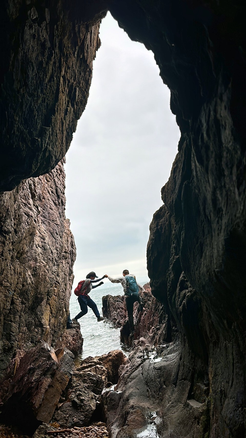 当黄竹角墩台遗迹出现在视野,康熙年间的烽火台静静诉说三百年前的海防故事🏯.走过遗迹,开始下降至海岸线,捆边攀岩段需要手脚并用,浪花在脚下拍打,这是全程最刺激的环节!
