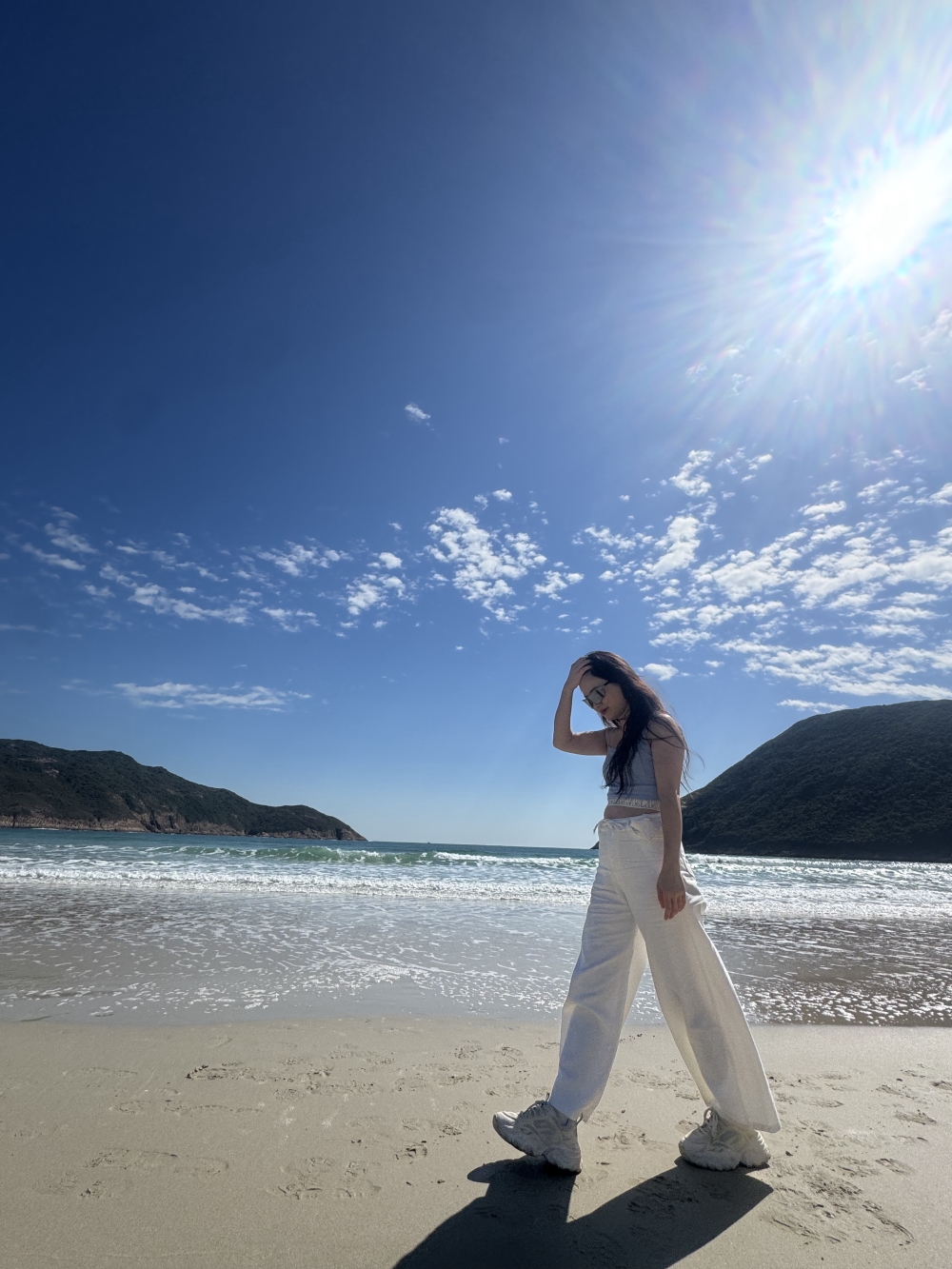 浪茄湾被誉为“香港的马尔代夫分夫”,拥有1.5公里长的半月形白沙滩和透明度极高的海水。这里是麦理浩径唯一零开发的原始沙滩,沙质细腻洁白,海水呈现迷人的翡翠渐层,甚至可以浮潜观赏小鱼。从西湾山俯瞰,整片琉璃海在眼前展开,形成港剧中“天涯海角”般的绝美画面,是放松身心和拍摄大片的理想场所。