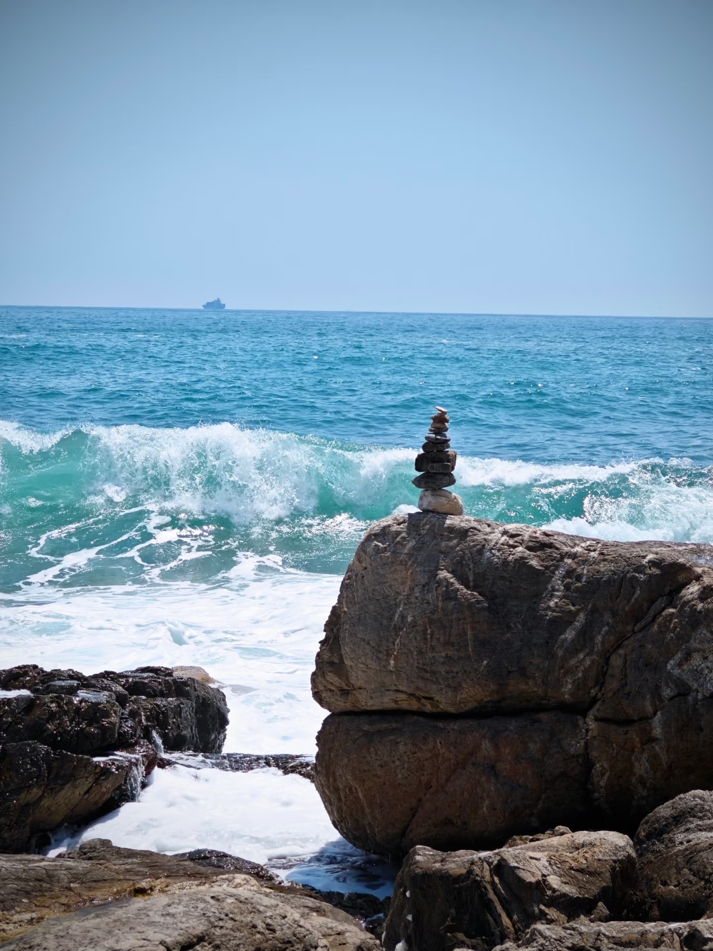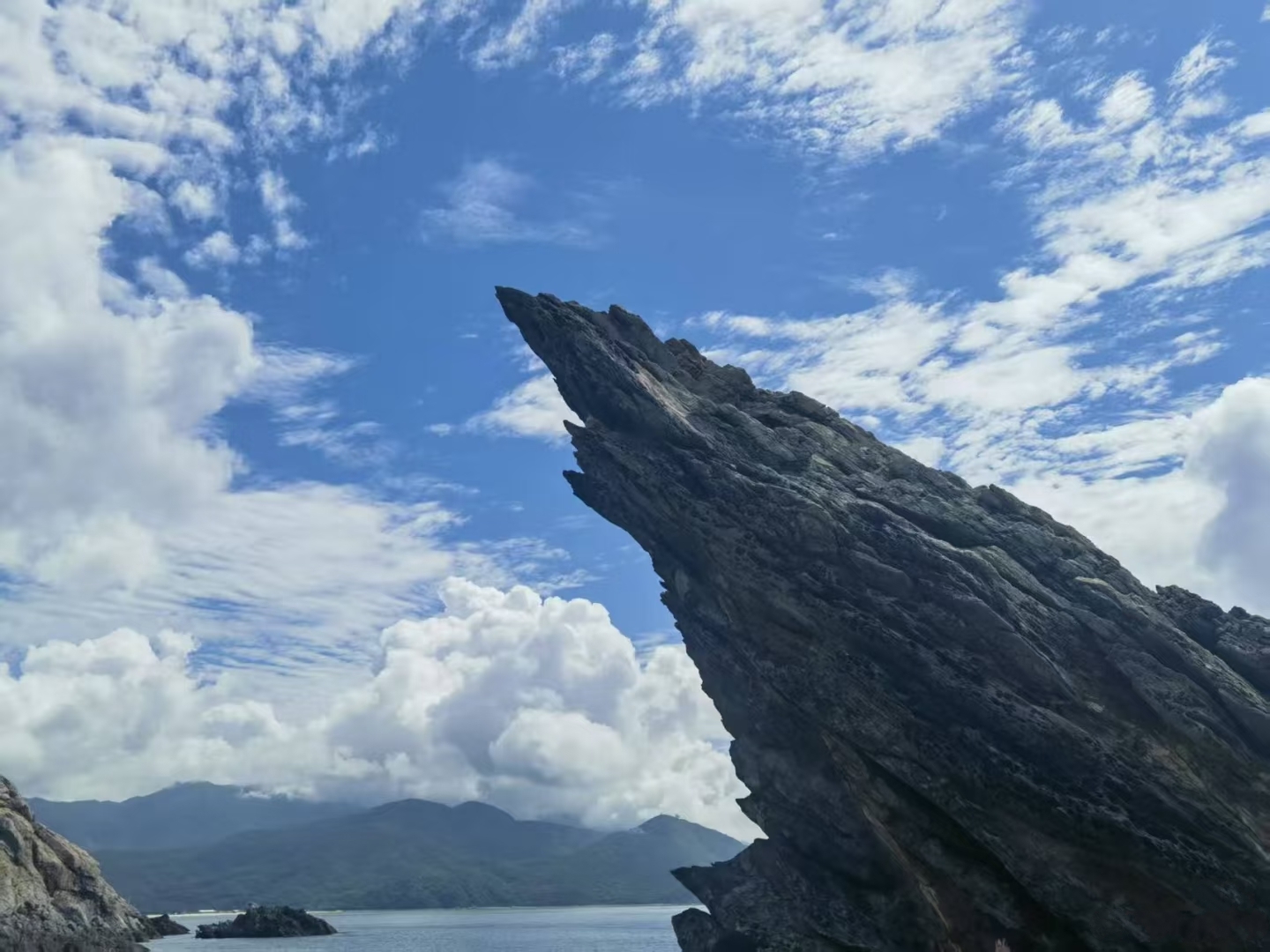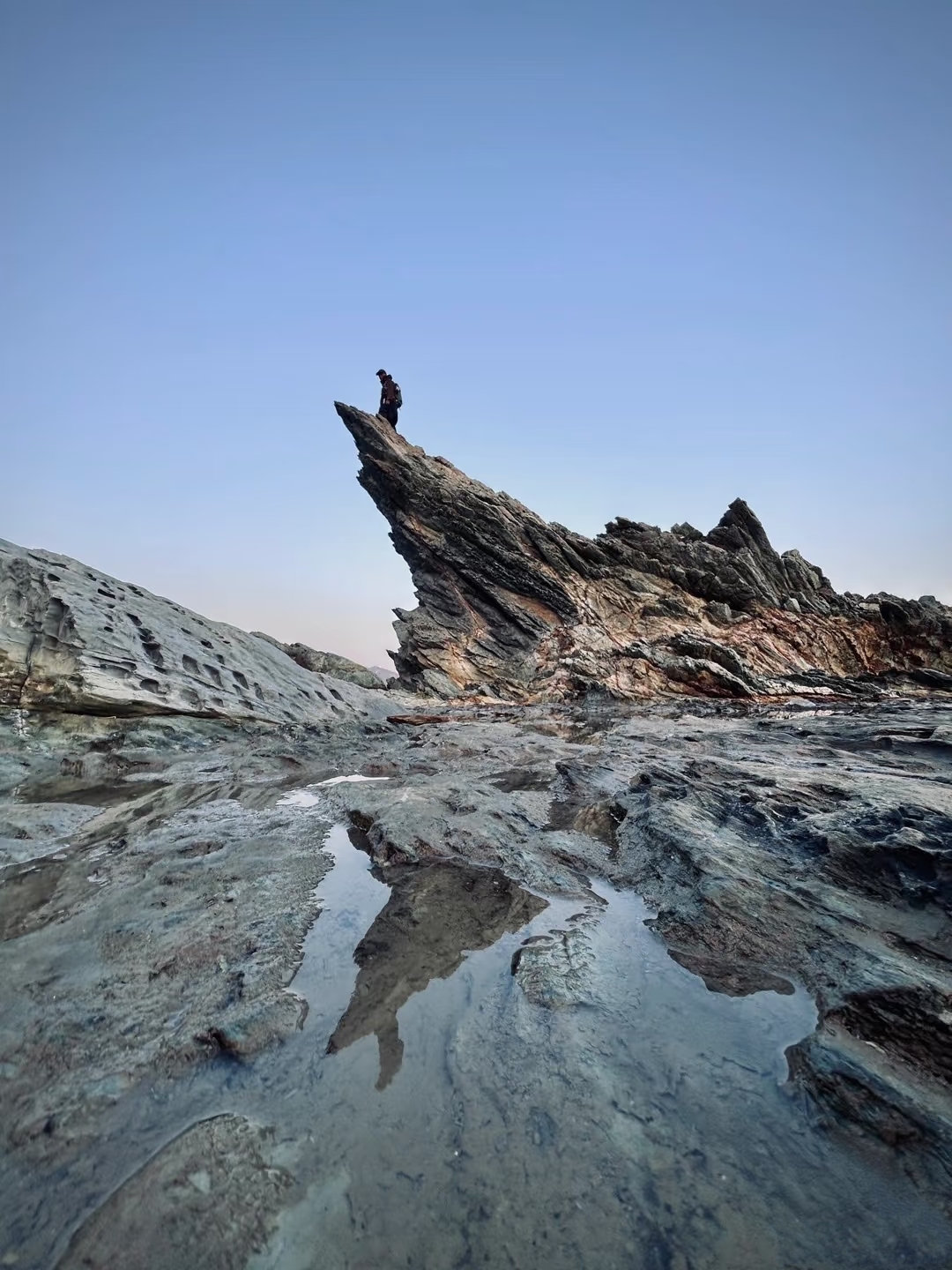 途中,你会与“飞机石”相遇。它像一架蓄势待发的远古飞行器,被时光遗忘在此,机翼指向无垠的蓝天与大海,静默中充满力量感✈️。而在另一侧,“鱼翅石”破水而出,以凌厉的姿态切割着风与浪,站在它身旁,仿佛能听见海洋巨兽深沉的呼吸。