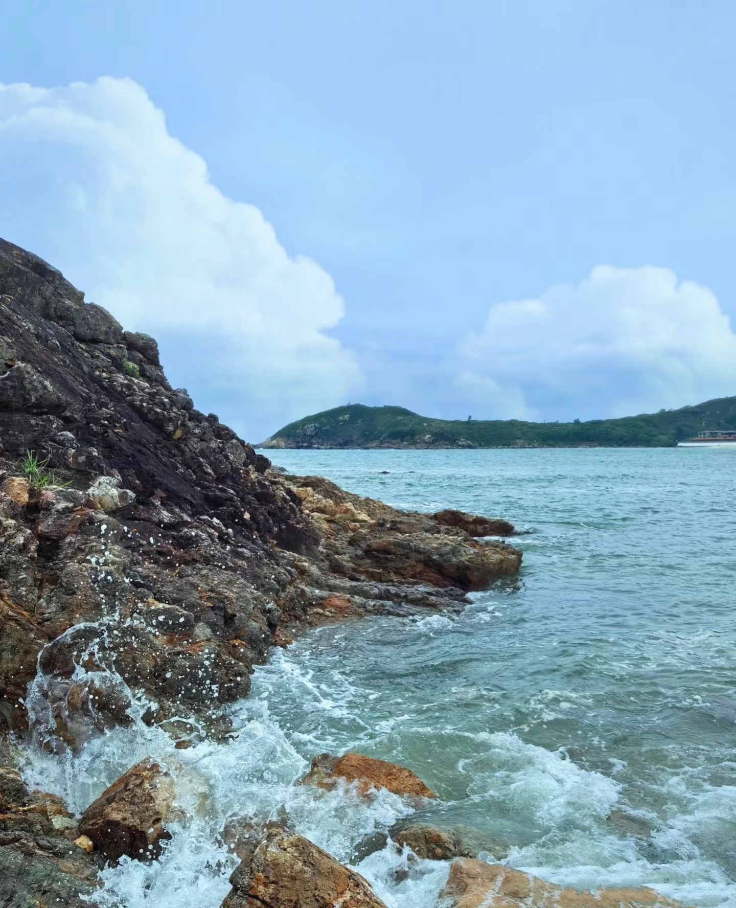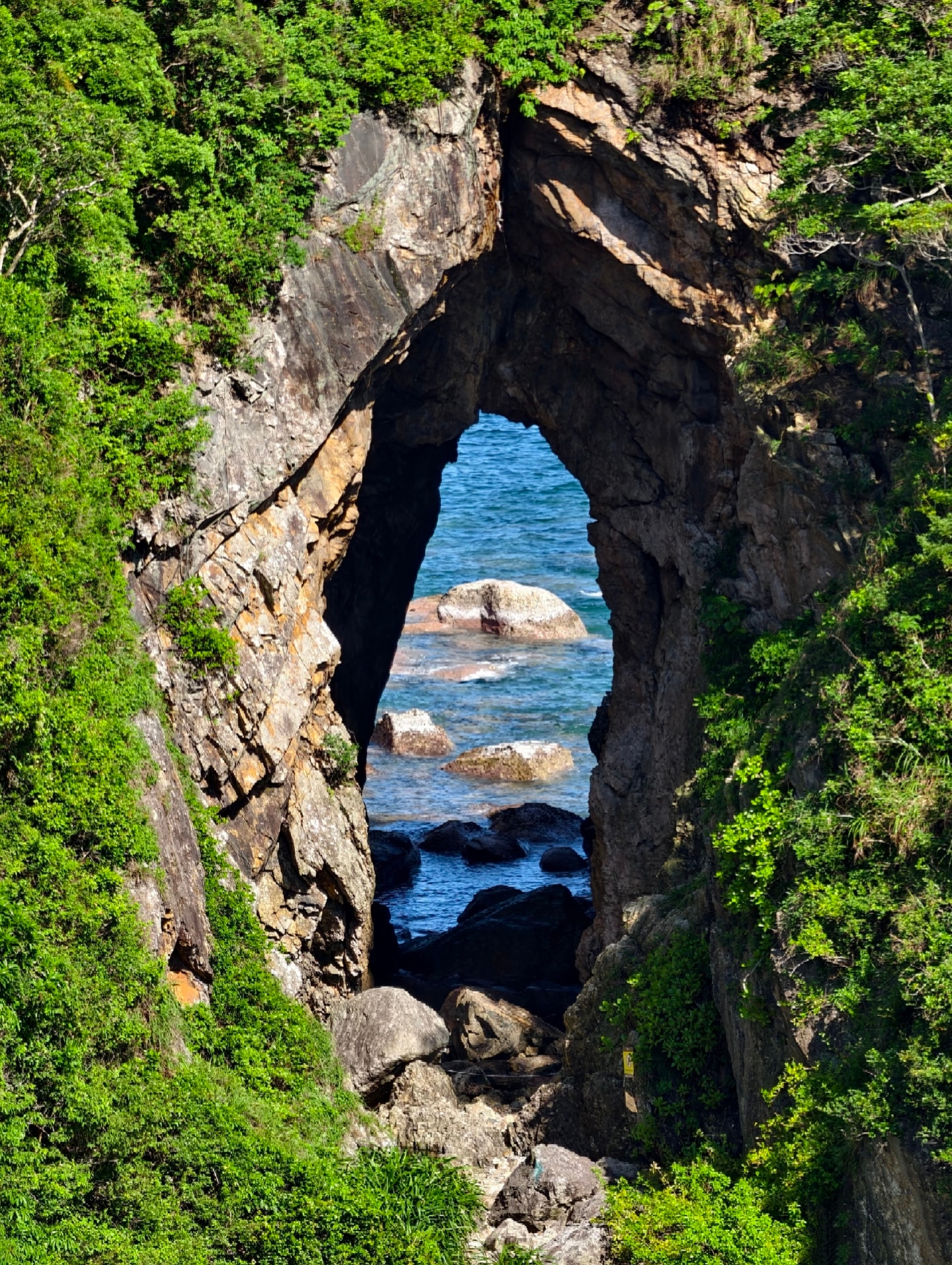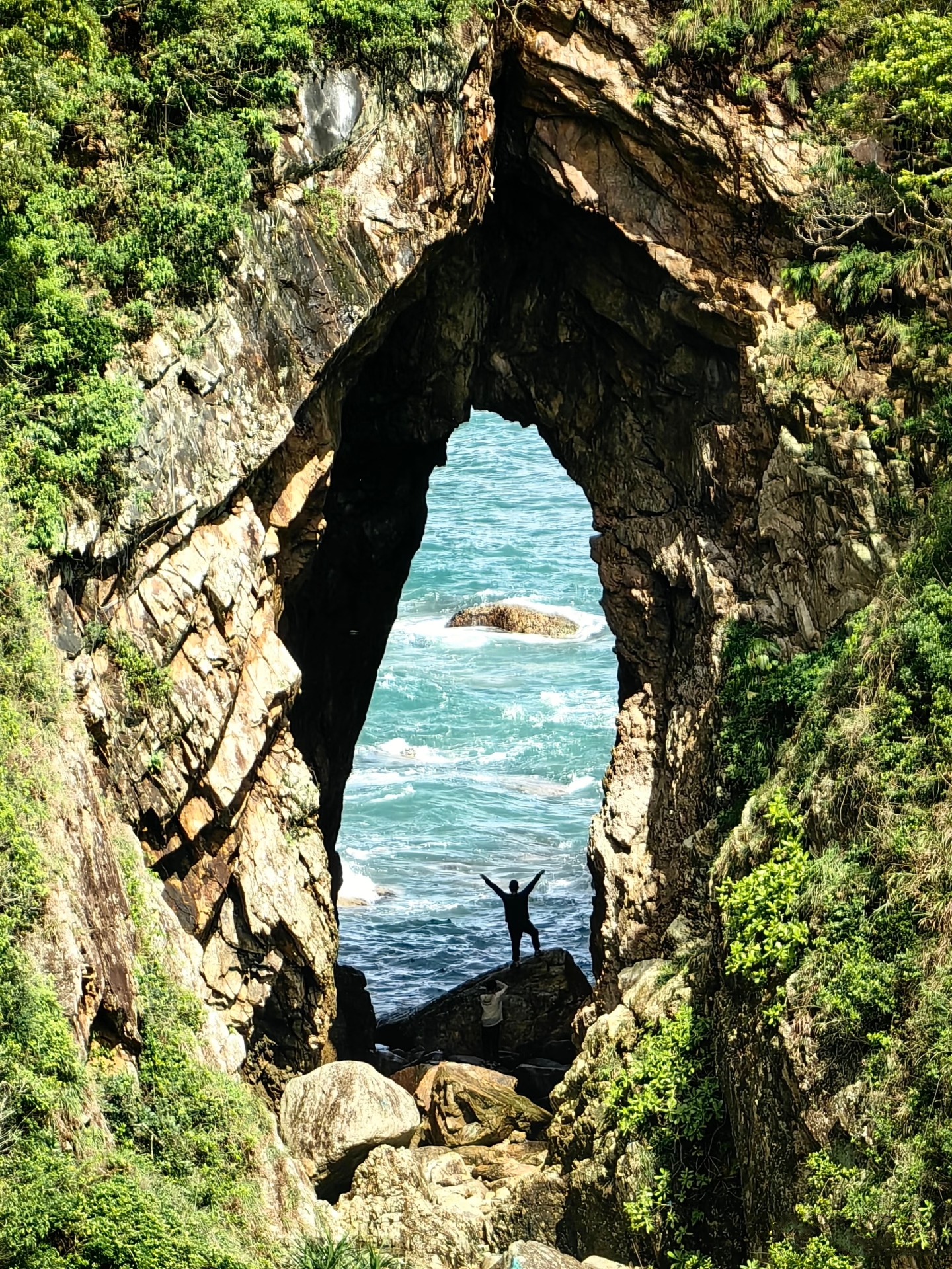 下山的路,领着我们从苍翠走向蔚蓝。海的气息越来越浓,直到穿鼻岩赫然眼前——巨岩临海,任波涛千年雕琢,形态嶙峋而坚定。站在岩边,听风与海的交响,看浪花在脚下碎成雪白的琼玉,你会感到,所有的汗水与坚持,都在这一刻被山海温柔地抚平与奖赏。