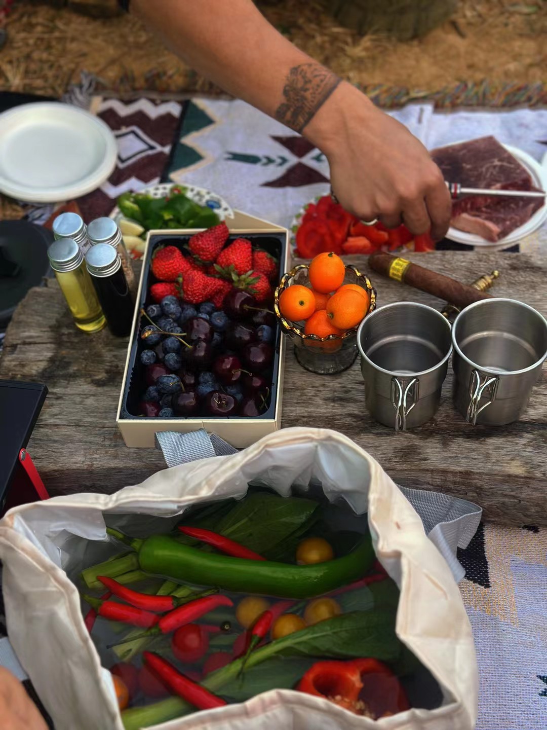 当夕阳为海面铺上金色地毯 我们的烧烤派对即将开始肉香四溢中,抬头便是渐变的晚霞天空 海浪声成为最自然的背景音乐;