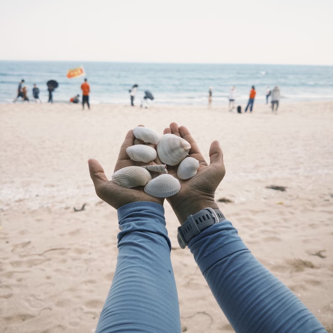 循着海岸线的弧度回到湾仔村,手里攥着捡到的奇异贝壳,心里装满了咸湿的海风记忆🌬️。