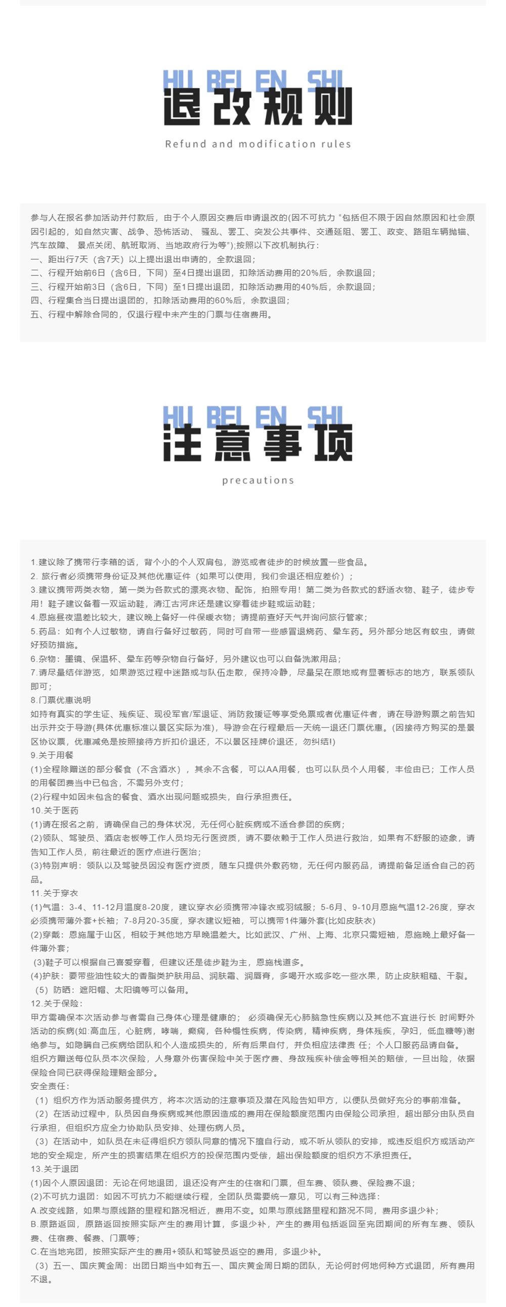 7. 遇到雷雨、台风、雪崩、山体滑坡等不可抗天气或自然阻碍,请您据情躲避,以防不测。