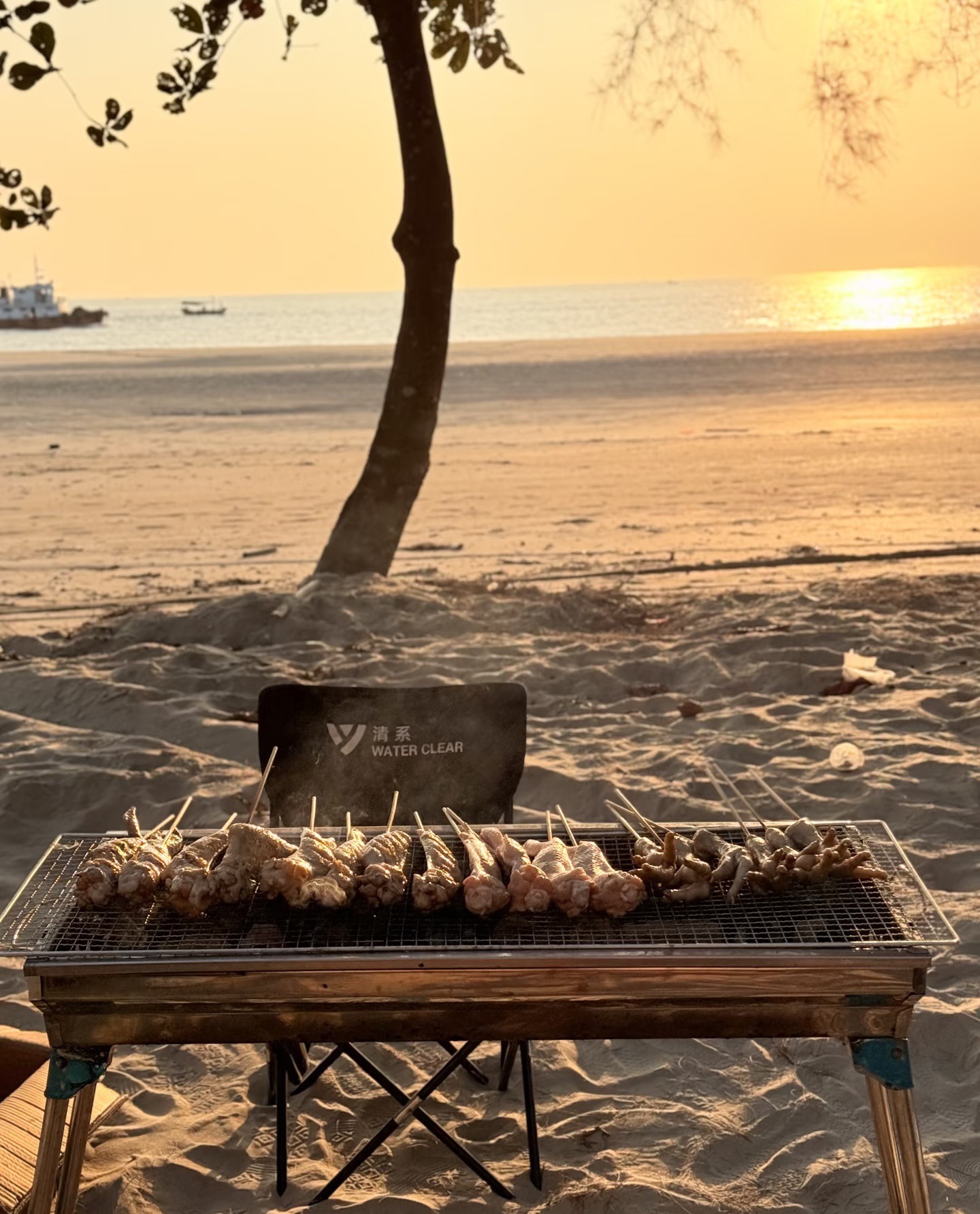 当夕阳为海面铺上金色地毯 我们的烧烤派对即将开始 肉香四溢中,抬头便是渐变的晚霞天空 海浪声成为最自然的背景音乐;