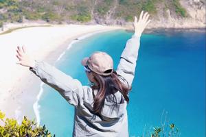 浪茄湾被誉为“香港的马尔代夫分夫”,拥有1.5公里长的半月形白沙滩和透明度极高的海水。这里是麦理浩径唯一零开发的原始沙滩,沙质细腻洁白,海水呈现迷人的翡翠渐层,甚至可以浮潜观赏小鱼。从西湾山俯瞰,整片琉璃海在眼前展开,形成港剧中“天涯海角”般的绝美画面,是放松身心和拍摄大片的理想场所。