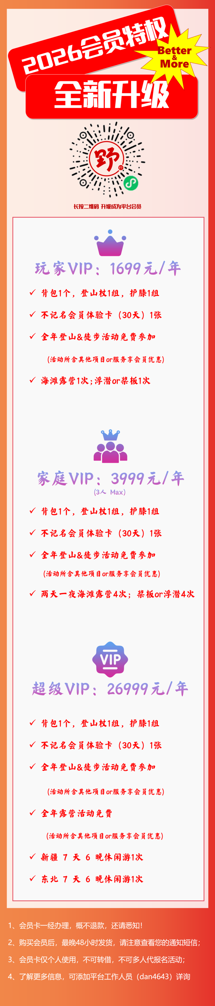 3.活动出发前,48小时内退出,活动费不退;