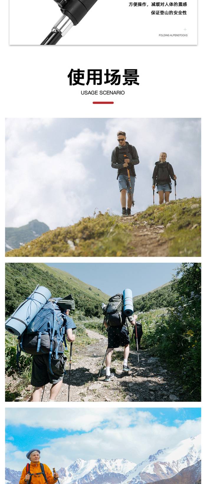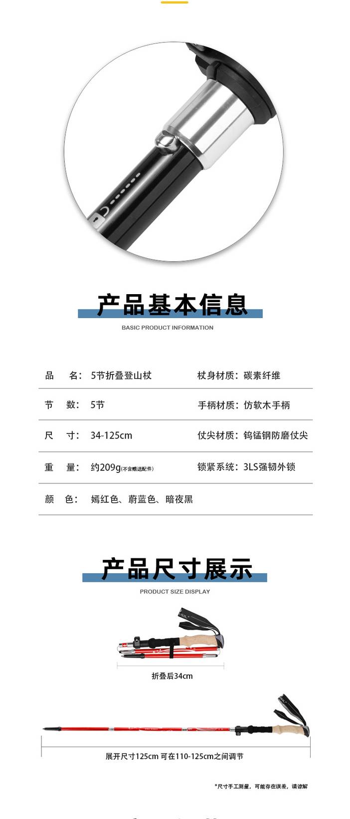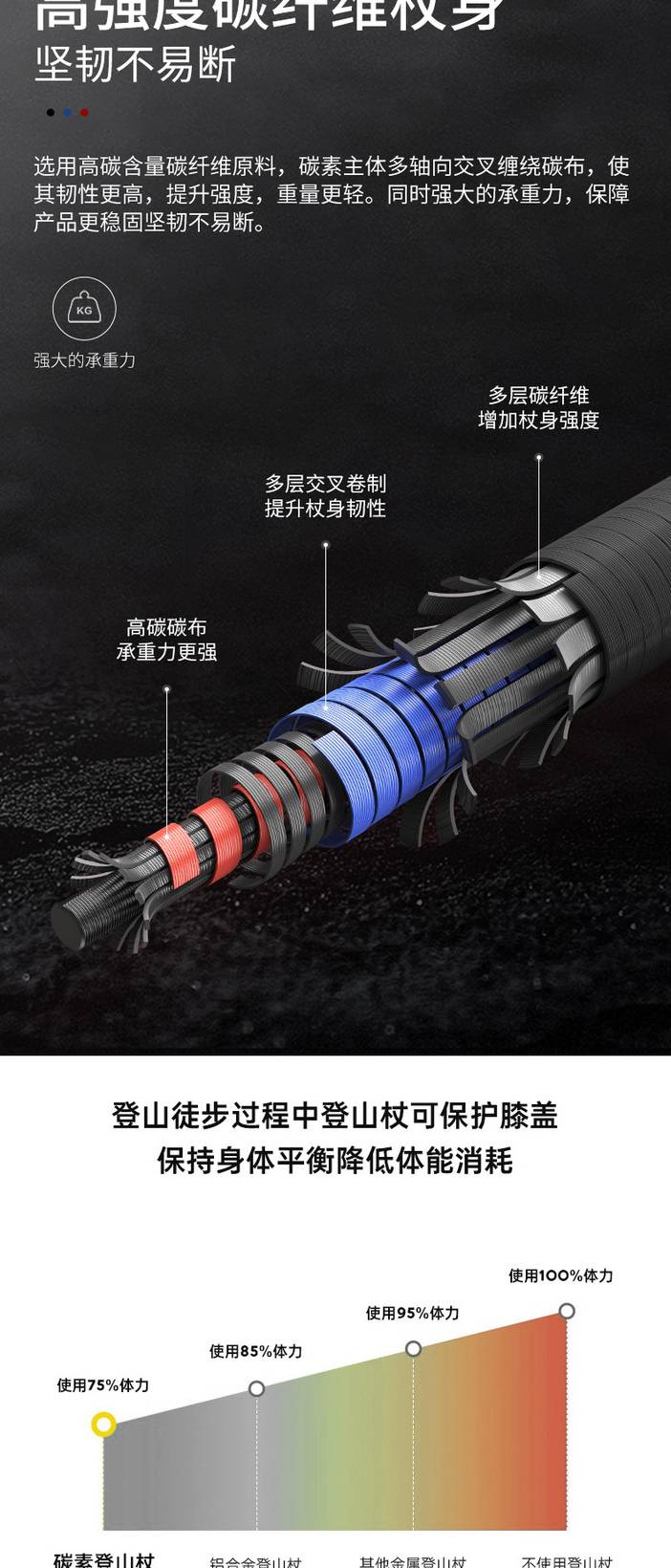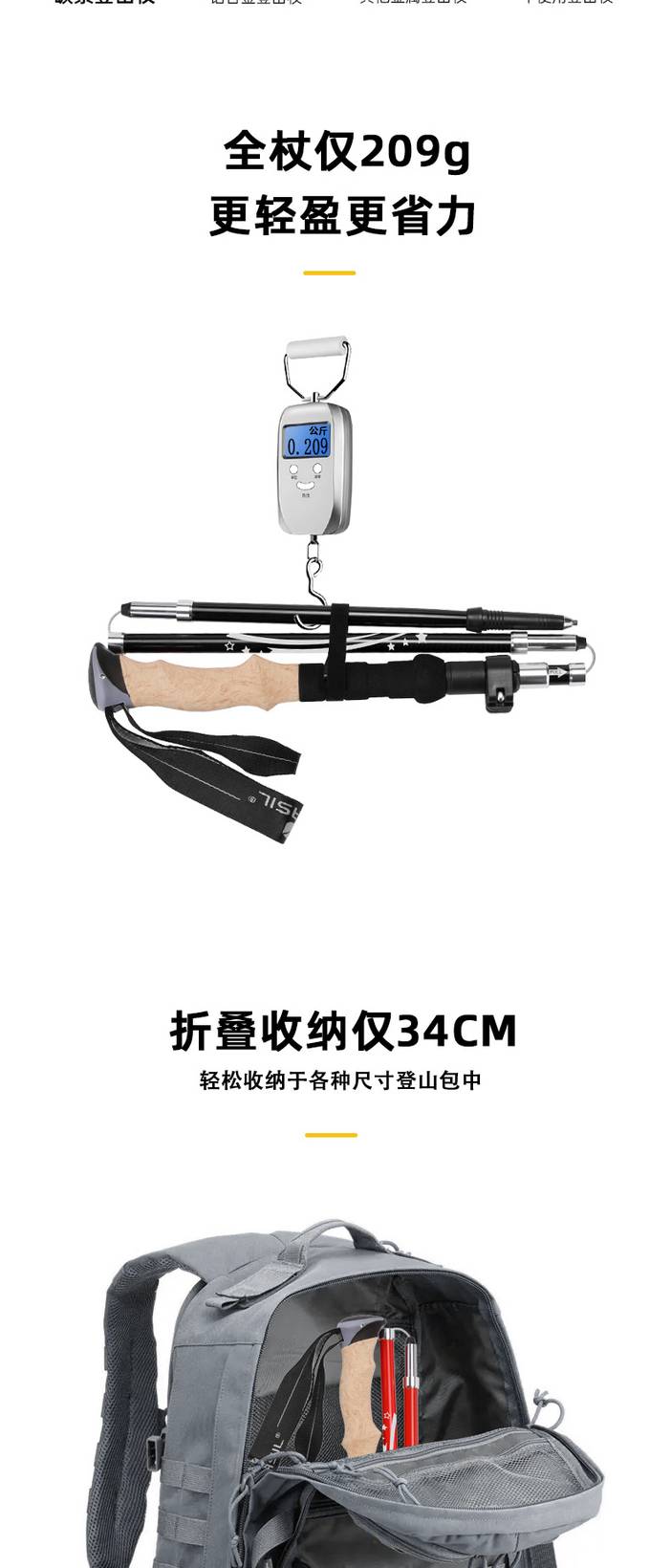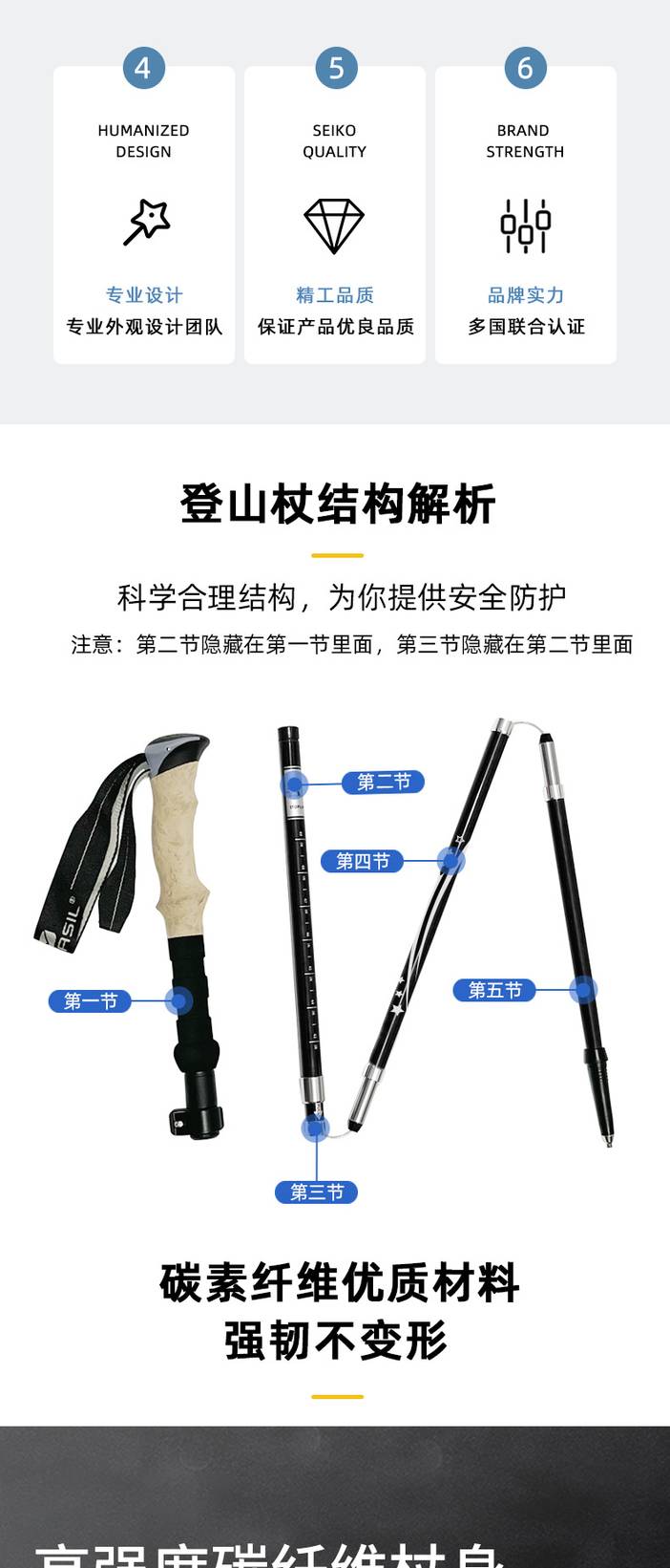 碳纤维登山杖超轻伸缩超短折叠便携男女户外越野爬山装备N93套装